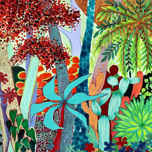 Acrylic, Enamel and Mixed Media on Wooden Panel