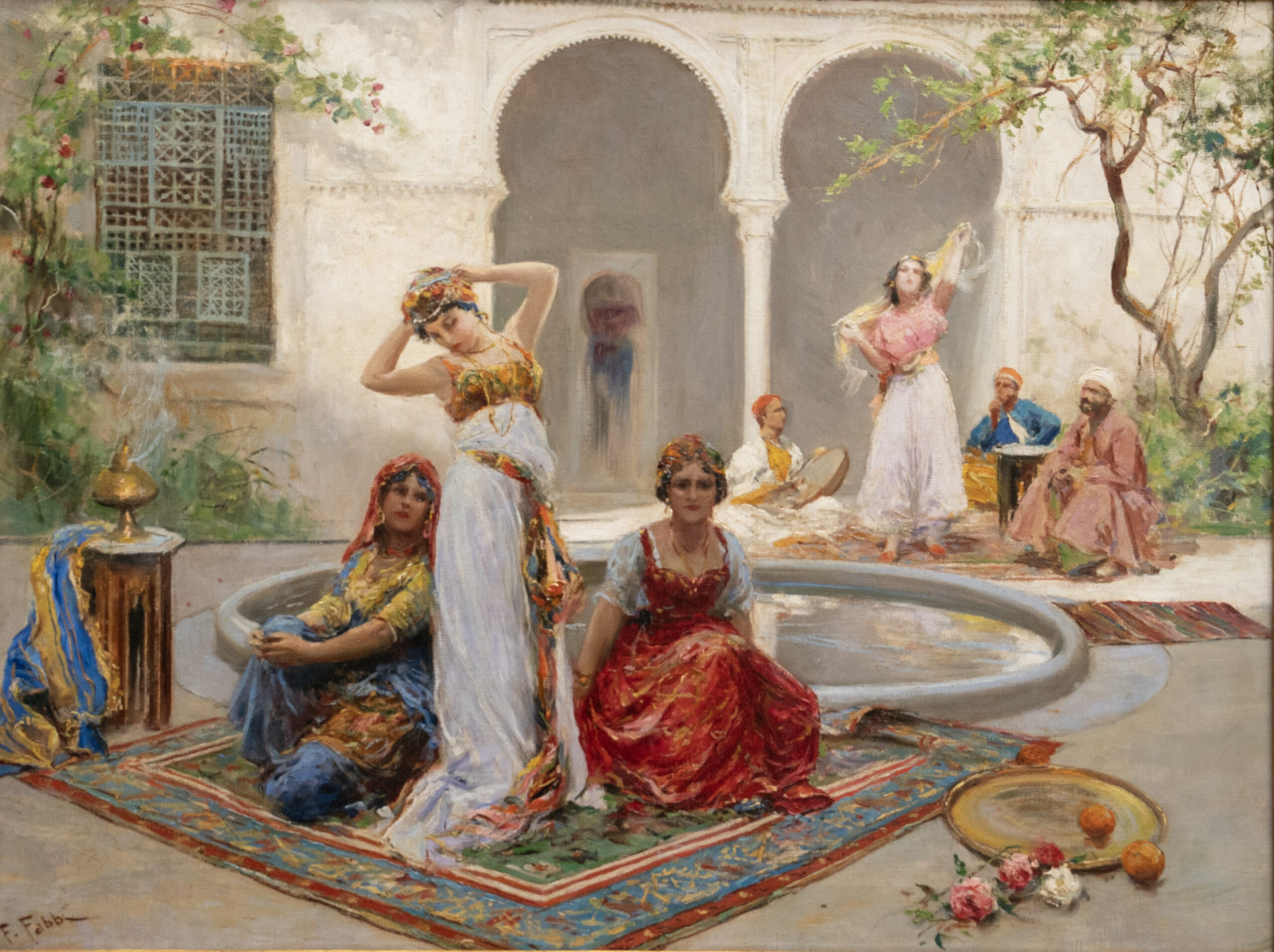 Organized into five thematic sections, the exhibition unpacks recurring Orientalist motifs. The Secluded World examines interiors, harems, and private spaces, while The Public Stage turns to marketplaces, street life, and performances. Spectacle of Seduction considers the allure of the dancer and the musician, and Archetypes of Women reflects on figures such as the mother, the muse, and the odalisque. Finally, Archetypes of Men presents the Bedouin, the scholar, and the warrior as central images of the Western imagination.