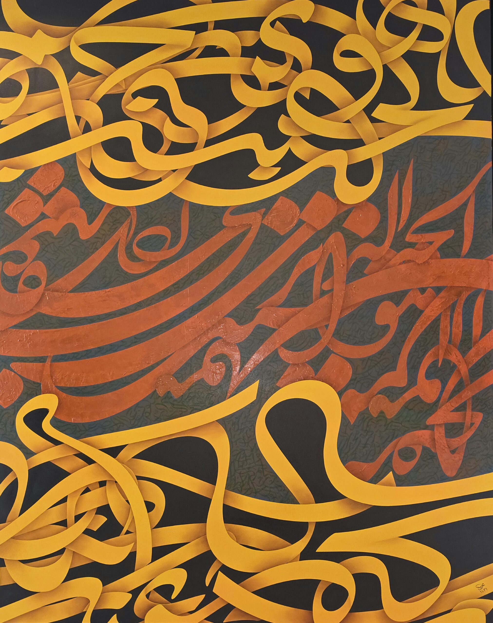 Through diverse techniques, materials, and conceptual approaches, the featured artists expand the expressive possibilities of Arabic script. Some treat calligraphy as a purely visual structure, distilling letters into form, rhythm, and geometry. While others remain rooted in textual meaning, transforming verses, prayers, and poetic fragments into compositions that carry cultural, spiritual, and historical resonance.